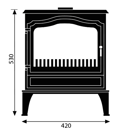 Clearances To Combustibles – 400mm sides – 450mm top – 305mm front – 400mm rear