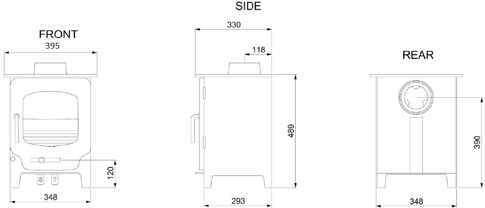 The ST-X4 has a 5"(125mm) diameter top and rear flue outlet. Can be used with 5" diameter flue liner or twinwall flue.