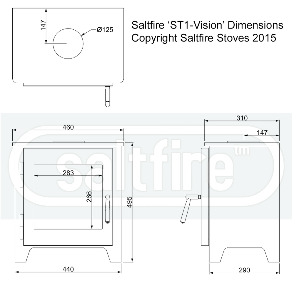 The ST1 Vision has a 5"(125mm) diameter top flue outlet (there is no rear flue exit). Can be used with 5" diameter flue liner or twinwall flue.