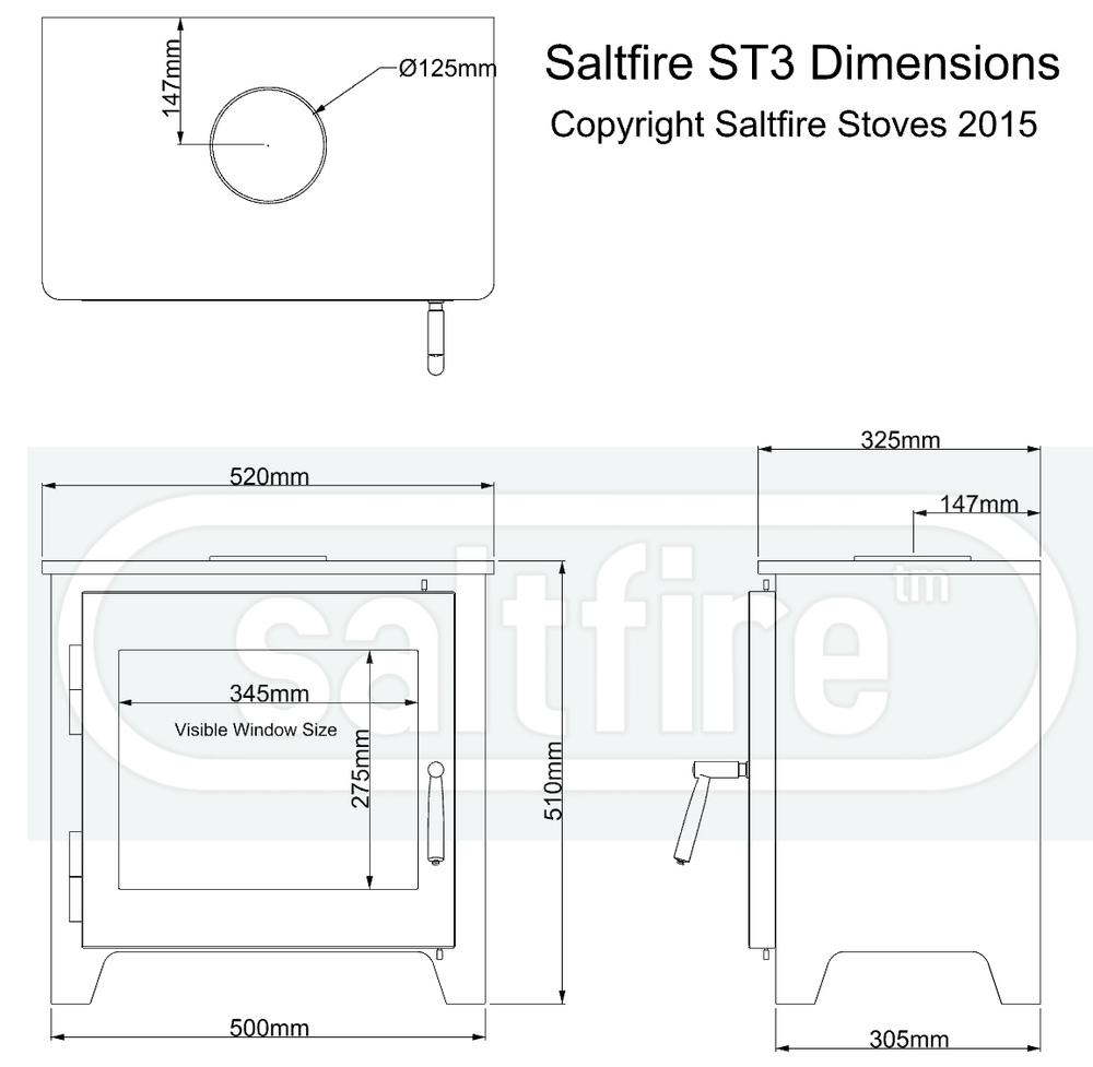 The ST3 has a 5"(125mm) diameter top flue outlet (there is no rear flue exit). Can be used with 5" diameter flue liner or twinwall flue.
